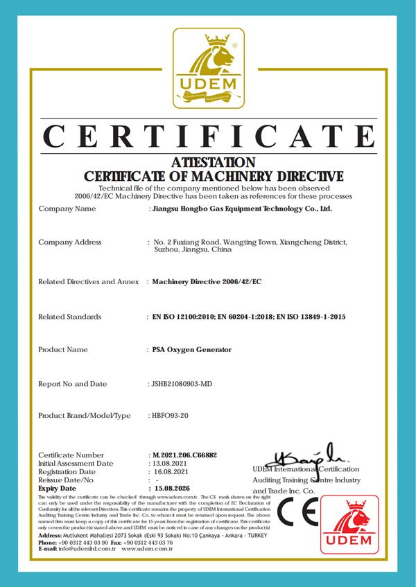 制氧機(jī)CE證書(shū)
